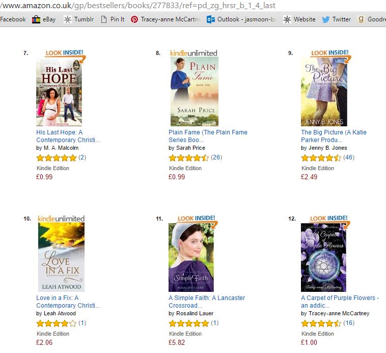 WOOHOO! 'A Carpet of Purple Flowers - Book One' reached the Top 100 Amazon Bestseller Paid Kindle Ranking in 3 Sub-Genres.Thank you so much. Chuffed to bits.#12 in Books - Fiction - Religious and Inspirational - Romance