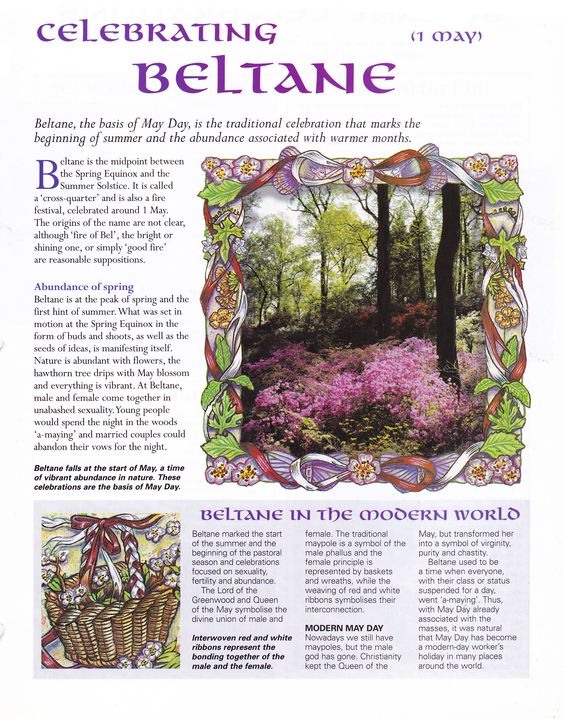 Beltane is the anglicised name for the Gaelic May Day festival. Most commonly it is held on 1st May, or about halfway between the spring equinox and the summer solstice. Historically, it was widely observed throughout Ireland, Scotland and the Isle of Man.