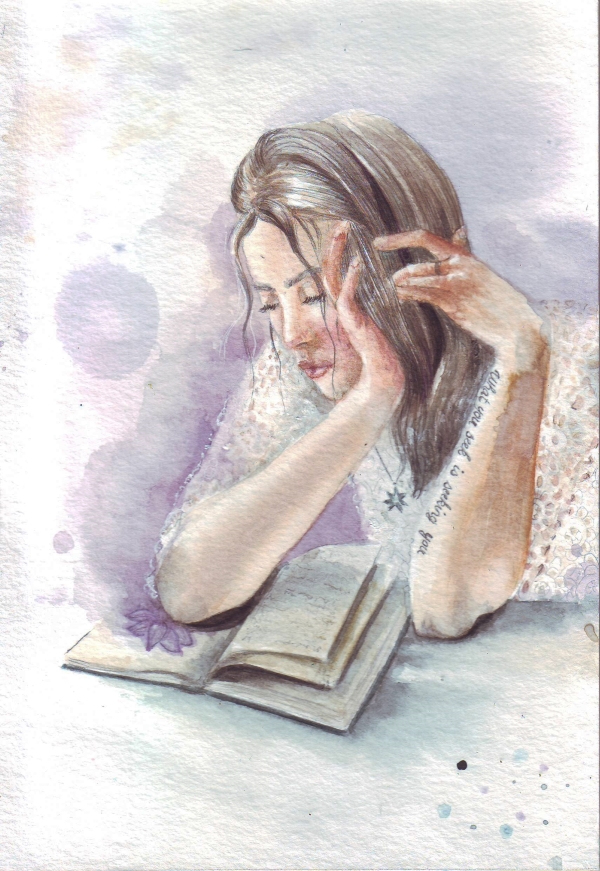 For a while, I've longed for some of the book characters to be immortalized via art. My own style, sadly, don't fit the images in my mind. Luckily, I came across Helga, while browsing art on Etsy, yep, an addiction of mine, while drinking crazy amounts of tea of course. :o) I loved the flowing use of watercolour, muted tones and softness of her creations. and so asked Helga to create the character 'Bea'. Above is the end creation. How perfect is she?