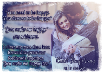 " Can't Stay Away was a wonderful book it was romantic, funny, emotional, steamy and left me wanting to follow the couple right after the very last page." ~ Jodeen from Jojo the Bookaholic