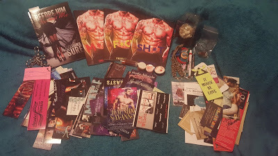 I had LOTS of fun at Glass City this year! I got to see several people I met at previous events and have chatted with on FB multiple times. It's really wonderful to know people at events. I had a really splendid day, sold a bunch of books, grabbed a bunch of swag..... I'll actually be hosting several giveaways in the future featuring this swag as well, so be sure you're following on my social media pages to find out about where you can win some. I haven't decided when I'll be doing the first one, but I'm thinking possibly once I hit 1000 likes on Facebook and other milestones, plus perhaps a FB takeover or party. We'll see. ;)