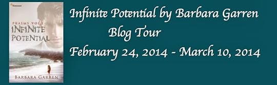 Title: Infinite Potential, Volume 1 of the Phasms Series Author: Barbara Garren Genre: Paranormal Romance, Contemporary (Adult) Release Date: April 22, 2014 (originally published February 24, 2014) Goodreads Book Link: https://www.goodreads.com/book/show/18801706-infinite-potential Pre-order Book Link : http://store.kobobooks.com/en-us/Search?Query=Infinite+Potential%2C+Barbara+Garren