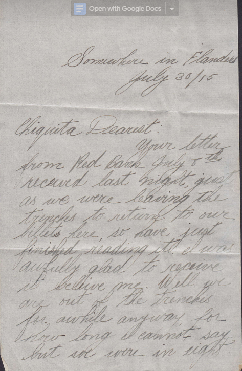 HM: I’ve written short stories all my life. I began and abandoned novels before. It had always been a dream to be a published author, see my name on a cover. It was not until these letters that I knew I had a book. There was never any question I would finish it, almost like Jim was guiding my hand…or perhaps it was my grandmother. Certainly, her picture gazed down at me from the top of my desk through the whole process. I can’t say where the drive came from but it was unstoppable, and was nothing I really decided. Remember that word “determined”? This was determined for me, and I was determined to make it happen!An Excerpt from Somewhere in Flanders: Letters from the Front.