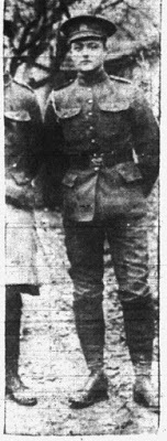 We have been on the march again and now are within a very short distance of the firing line. A certain town within a mile or so of here has just been under a very severe bombardment by the Germans and it would make anyone heart sick to see the women and children and old men hurrying away from their homes with only what they can carry with them. The road is practically blocked with motor-lorries, transports, ambulances etc carrying the refugees away and those who are not fortunate to get a ride are pulling little carts with their personal necessities in them.