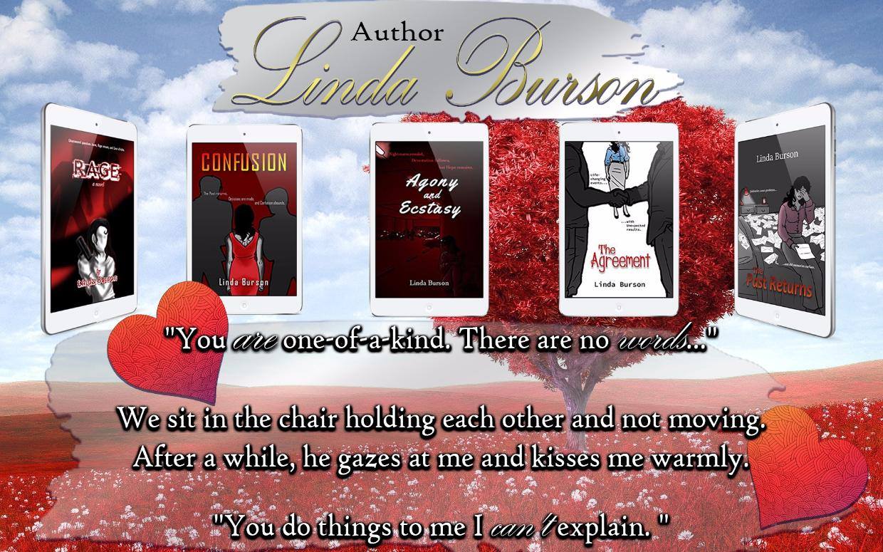 Linda J. Burson is an author from Connecticut. After years of writing and editing for others, Linda decided to tackle her first romantic suspense novel entitled Rage, which began as a single book, eventually became a trilogy, and finally a series. There are currently six novels in the Marcy series. Linda’s novel Rage placed in the Top Ten in “Best Thrillers” in 2016, and in 2016, she was in the Top Ten in Preditors and Editors Readers Poll in the “Best Author” category. Her novel The Agreement was also in the Top Ten under “Best Thrillers.” Excerpt from Rage: