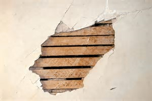 Teodoro puts on the gloves before sweeping some of the larger rubble towards the main pile. Getting up on the chair, he places the wrecking bar into the cavity made by the missing mouldings and heaves on the laths that hold the plaster in place. He is fortunate in his placement. When he pulls down, a section of the ceiling the size of a small coffee table falls. The laths at the opposite end are rotted from the excess moisture. They crash to the tarp-covered floor, breaking into a dozen pieces. A dust cloud erupts from the collection of rubbish fogging the air. Teodoro jumps from the chair to get out of the way of the falling ceiling, slipping and falling onto his butt. The pry bar he has been using lands in the middle of the pile with a thud.