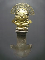 Teodoro unravels the cloth to reveal a roll of paper. The shiny edge of something gleams from within. He drops the rag to the floor, holding the items in his hand. The paper has an unfamiliar feel and thickness. As Teodoro unrolls the paper, the golden object slips out, falling to the floor. Miguel has alit from the ladder, curious as to what Teodoro has. He is standing beside the younger man when the object falls. He stoops to pick it up. Holding it in both hands, the men are speechless as it is obviously made of gold. After several moments, Miguel says, “This is an ancient dagger, Teodoro; it is similar to one on display I saw at the University in Cuzco. Archeologists have suggested knives like this were used in what was referred to as capacocha ceremonies, human sacrifice, often children. The squat figure of the haft might be a depiction of one of their gods. This one reminds me of Supai,the god of death, but I’m only guessing.” Teodoro remains spellbound, not so much by Miguel’s interpretation, but at what such a relic might be worth. He has forgotten about the paper he holds in his hand until Miguel hands the golden object out to him and says, “Hold this Teodoro and let me see the paper. Handle the scroll carefully for it seems quite old.”