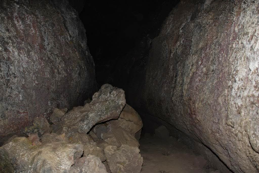 Moving to his right where he can see the bench, he follows that. It extends half as long as the wall on the opposite side. The clutter is similar from one end to the other, except in the center where remnants of woven bowls lay half eaten away. They contain shards of dried foods, possibly avocados distinguishable by their wrinkled skin, stem and petrified leaves still attached. He walks slowly beyond the shelf towards the bare rock wall sidestepping the scattered debris, watching for cracks when his light shows him that the cavern sides are closing in. He flashes his light back at the golden wall gauging that he is at the farthest end from where he entered. He returns the ray of light to his front and sees another slight bend. He follows the curve until the sides shrink to an opening that comes to the middle of his chest, about four feet but twice as wide as him. There is huge split in the floor where the pathway he is on ends. He creeps carefully to the lip shining his light down. There is nothing to see except granite. Scrunching down on his knees he shines the light into the hole. He guesses the gap to be about six feet wide. He lifts his lamp and what he sees amazes him as much as the hammer but not with the same exuberance. He grins as he thinks to himself, “the experienced discoverer now”. His gaze takes in what seems to be a store room, broken barrels along one wall. The bent spears propped against another narrow stone ledge suggest an armory and directly in front of him, twenty feet away, is a stairway amazingly cut from the hardest stone. It is a captivating sight. The steps follow two wide cracks in the mountain, joined together at one time with fresh timber. The wooden, un-rotted ends are still wedged onto the rock treads. The central part of the stairway gave way centuries ago and vacations at the bottom of the dark pits.