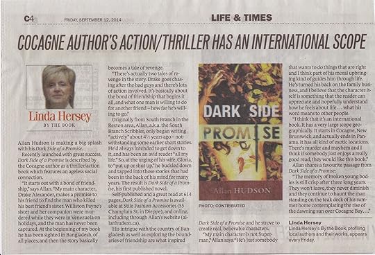 On September 7th, my novel Dark Side of a Promise was successfully launched in Moncton, New Brunswick. It was a fantastic evening, many friends and family, a few strangers and so many best wishes.