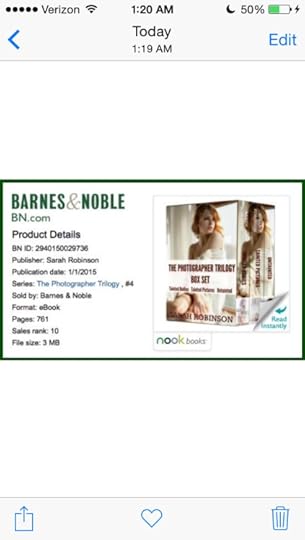 THE PHOTOGRAPHER TRILOGY BOXSET IS CURRENTLY RANKED #11 IN THE ENTIRE WORLD ON BARNES & NOBLE!