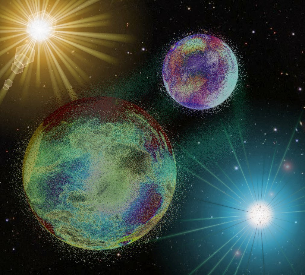 Si el espacio en el que situamos estas partículas es infinito, se repetirían las mismas 16 combinaciones sin más remedio. Ahora apliquemos el mismo razonamiento a nuestro universo observable (con un radio de unos 13.800 millones de años luz), donde caben unas 10118partículas subatómicas. Las posibilidades serían 2 elevado a 10118, un valor inconcebiblemente grande, monstruoso, pero finito al fin y al cabo. Esto implica que en un espacio infinito, si pudiéramos viajar lo suficientemente lejos, se empezarían a repetir una y otra vez los mismos mundos, con las mismas historias, algunas idénticas, otras diferentes en pequeños detalles, otras radicalmente distintas... En fin, todo lo que sea posible mientras no se contradigan las leyes naturales del universo.