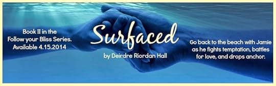 Also, I have an exciting announcement: Sailing onto your bookshelves and Kindles Tuesday April 15 will be SURFACED—a follow up to TO THE SEA taking readers back to the beach with Kira's hot fling, Jamie. This is book two in the Follow your Bliss Series. Surfaced can be read after TO THE SEA or as a stand-alone, quick beach read filled with romance, surfing, and transformation. Check back soon for updates, the cover reveal, a giveaway, and more.