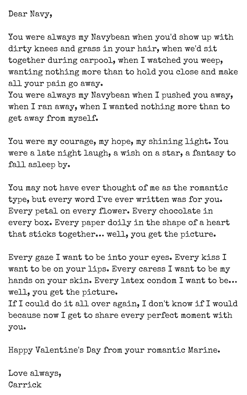 Love Note from Carrick to Navy