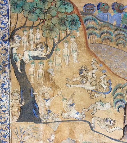Being all in the image of Indra's beautiful wife, like "sweet-smelling naked sixteen-year-old girls," the men who threatened Vessantara's wife took these female-fruits instead, bringing them back to their respective homes. After making love to the "women," the men would fall asleep for four months and lose all of their power.
