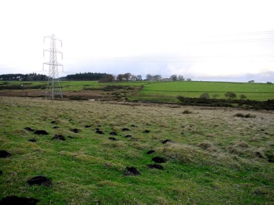 Note: To the right of the pylon, you can see a whitish line - which is a shallow bog consisting of farmyard slurry (liquid manure mixed with urine), laced with diesel oil contamination. Our path consisted of large stone slabs, carefully laid a few inches under the surface of this poisonous morass (despite being an official public right-of-way). That was when I discovered that my waterproof walking boots had sprung several leaks.
