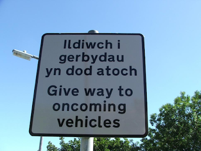 I first noticed this more than 20 years ago when I saw that the road signs and marking in Hay-on-Wye (which straddles the border between England and Wales) had important instructional highway signage in a bilingual form - with Welsh coming first!