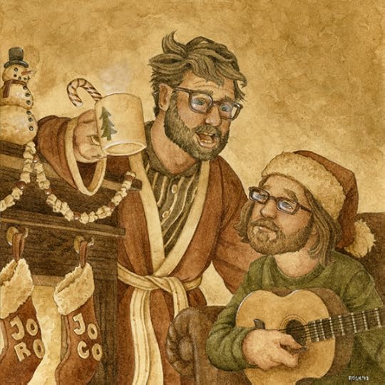 Hence, there was no small amount of shock and chamomile tea spilling when I received a call from the gem-encrusted cell phone of bona fide rock star John Roderick (of The Long Winters fame). Evidently, he and fellow guitargonaut Jonathan Coulton had grounded their golden pleasurecopters long enough to collaborate on an album of Christmas music, and wished to secure my services for the front and back covers. Having met the two under totally normal circumstances a month prior, I knew this was a great opportunity to work with a couple of swell guys who—if I played my cards right—might just share with me the secret of facial hair husbandry (Note: they did not).