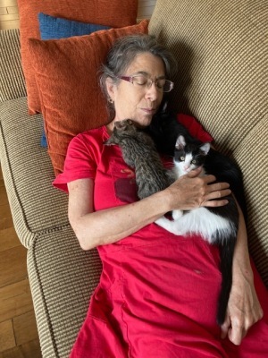 Does cat love run in your family?Yes! My daughter Rachel has a wonderful Maine Coon kitty, Maggie. We just drove from Chicago to Providence in July with Maggie, and she was a star traveler. My niece Hannah has an “adventure cat”, Lily, who has her own Instagram page.