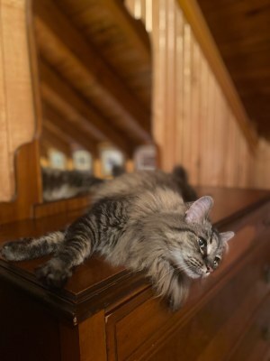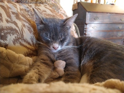 I don’t have any cats at this time. I used to have quite a few. My last cat, Hooch, passed away in April of 2020.