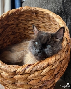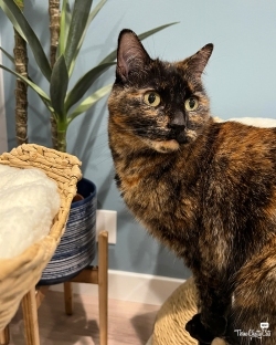 Olive is our tortie who we also found as a stray kitten about one year after finding Dexter. She loves her big brother, but she’d be perfectly fine being a single kitty. Olive is our smallest cat, but she is also our fiercest and truly embraces the tortitude stereotype. She is not a lap cat, but she will come up and tap you if she wants pets. It’s quite adorable. Olive is our Rebel Starlet.