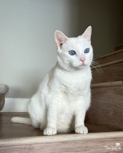 Woodrow was our first foster fail win. We had him for several months before deciding to adopt him in 2017. Woodrow is our biggest cat, weighing in at around 14 pounds. He comes off as a bit dense sometimes, and his main focus in life is food. Woodrow is our one true lap cat – any lap will do, even a stranger’s lap. Woodrow is affectionately referred to as the Lovable Dum Dum.