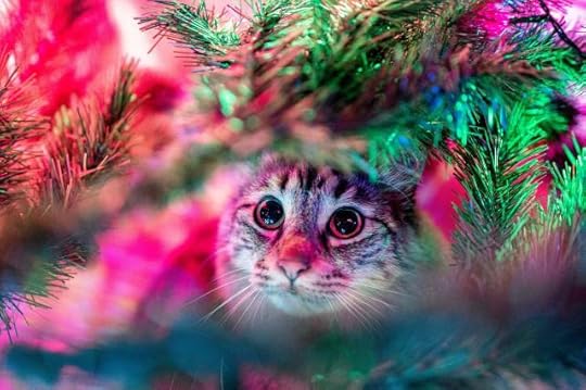 Arriving at the shelter, I came through the big main doors to admire the pandemonium of decorations in the lobby. The large, spacious room had been transformed into a feline fairyland with twinkling lights and sparkly red and green streamers cascading from the mezzanine. A huge living fir tree stood tall beside the admittance desk, its fragrant limbs decked with photos of the shelter cats, their Cat-mas wish lists printed on the back. Under the tree lay cases of cans, bags of kibble, boxes of litter, beds, and toys galore. It made me smile to see how big-hearted people could be during the holidays. Hopefully they would remember to carry their generosity into the year ahead.
