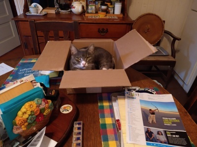I am glad to be back in Portland, though I miss the warm weather, the rolling sound of the ocean, and not having anything pressing to do all day. But home is where the cat is, and in our case, three cats, who were glad of our return, then ignored us, and all was back to normal.