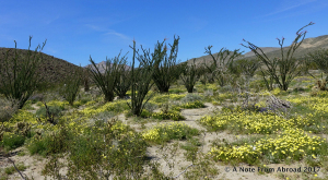 The desert part of this wonderful travel blog looks so much like a place I lived for a short time in my early twenties. In fact it is about 150 miles away from my little home near Midway Well. I was also there in the spring and saw the amazing transformation that the sparse rain makes. Flowers everywhere!