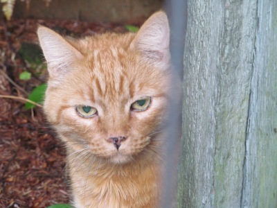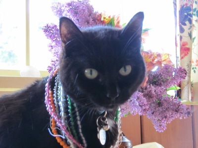 Big stalk with multiple blossoms. Dirty Harry (cat) looking askance.