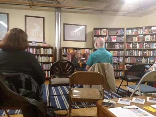 The best book event I had was one of my first, at Another Read Through, a wonderful bookstore that, alas, moved online during COVID. I read from the first two books in the series, Cats’ Eyes and Copy Cats. I brought my registered therapy cat Tinkerbelle, and I think most people came for her.