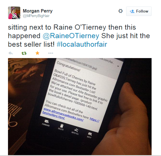 So, while I was at the Author's Fair on Saturday meeting some amazing folks in the community and selling a couple of copies of Most Beautiful Words I received an email telling me that Bowl Full of Cherries had hit the All Romance eBooks Best Seller List.