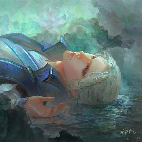 Picture Source: hrfleur.deviantart.comhttp://writeworld.tumblr.com/post/873... battle raged for what seemed like days. The light and noise frightened the local villagers so badly that they abandoned their homes and went up into the mountain to hide in the caves.When they came back, the village was damaged; the soldiers had raided it for supplies and valuables but luckily most of the buildings were still standing. Not like their crops and fruit trees; they were all destroyed. The villagers felt justified in searching through the abandoned camps for anything the armies had left behind. They buried any bodies to stop disease and ploughed back the churned earth into straight furrows. They didn’t know which side had won and they didn’t care. It didn’t make much difference to the day-to-day life of the villagers.The girl was sent out to find any stray livestock. The noise had frightened them too and most had startled and broken the fences the first night. The others probably got eaten.She had walked quite some way when found the dead soldier in the ravine; his blue uniform damaged and dirty. He lay flat on his back with his hand above his head. He looked as if he was sleeping, but oddly, the earth under his head was blue. As if the colour had leached out of his uniform and stained it somehow.She had never seen anyone with such fine pale skin and delicate features. His hair was even light coloured, almost silver. The colour looked like some of the old people in the village but his skin was not wrinkled or aged. She leaned down to look closer and noticed that the hair in his eyelashes and brows was dark. Had something happened to him to lighten his hair? Or, like she knew some women did, did he dye it?He looked so different that she wanted to touch him. His features were as fine as glass. She touched his cheek and was not surprised that he felt cold. Then she brushed a fingertip over his eyebrow and jumped back a foot when the eye opened. He wasn’t dead.He tried to speak, but only croaked something she didn’t comprehend but she did understand. Water.Carefully she poured drops from her drinking flask into his mouth. His colour improved immediately. And it seemed to get more blue, especially his hair. Once he had the water inside him, he rolled over and as the skin of his face touched the blue puddle, it sucked up the blue hue from the ground. She blinked. “What w-was that?”He understood that. It took him some time to find the words, as if hers was a language he seldom used. “My... blessing? No... gift... manna?” he tried.She was confused. “It’s magic?”He nodded.“And it kept you alive?”Another nod. “The fight, no battle. Who won?”She shrugged. “I don’t know. They’re all gone.”With a groan, he threw his body back on the ground.“Don’t do that! You’ll hurt yourself.”He rolled onto his side and curled up. “Let me die.”“You can’t stay here,” she said. “Someone will find you.”“I... don’t care.”“Well, I do.”He glanced at her. “Spoils of war?” he said in his own language and then he laughed.She frowned at him, suspecting he had made a joke at her expense.“Fine.” He took a deep breath, but it hurt him to do it. “I am yours.” His hand reached out to her. “Help me move.”Racking her brain, she was trying to think where she could hide him, and bring food and water without raising suspicion. The shepherd’s hut might work.It wasn’t until later that night, when she was in her own bed and sleep evaded her that she started to worry if she had even done the right thing.~~~~© AM Gray 2014