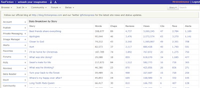 I write stories that people tell me they like. I have… *runs off to look up ffn stats*