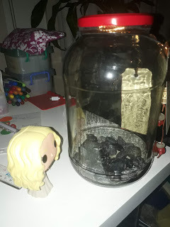 Stupid ADHD brain. You really think I’d know how to live with it by now.Here’s another example: I made a jar to put a stone in for each 500 words I wrote that day. It’s cute and arty. I made labels with hand-drawn fonts and tied it all up in shiny bronze ribbon. The idea was that each day I’d add pebbles and that they’d make a satisfying sound and be a physical reminder (as the jar filled) of the words and the work I had already done.