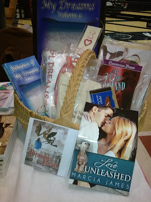 A short note to recap the day. The grand prize hung out on the table until 3:00 but it went to a mother and daughter both of whom are avid readers. Among the items included were At Her Command by Marcia James.