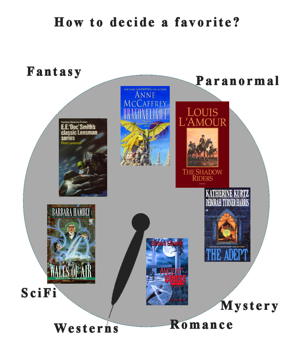 Now to the topic. I won't pick a single book as the most read, and you can't make me. Louis L'amour's Sackett series and Anne McCaffrey's Pegasus/Tower and Hive series are like old friends. Several of the books were so well-worn that a second copy had to be picked up. That's not to say I keep every book I've read or reread. some were parted with after a move or other enforced clean-out.