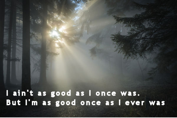 The lyrics by Scott Emerick and Toby Keith relate because I have, as the song says, "a few years under my belt." (How many is none of your business. After all, a lady has to keep some secrets.) The song lets me believe that no matter how old you are, you can still be good.