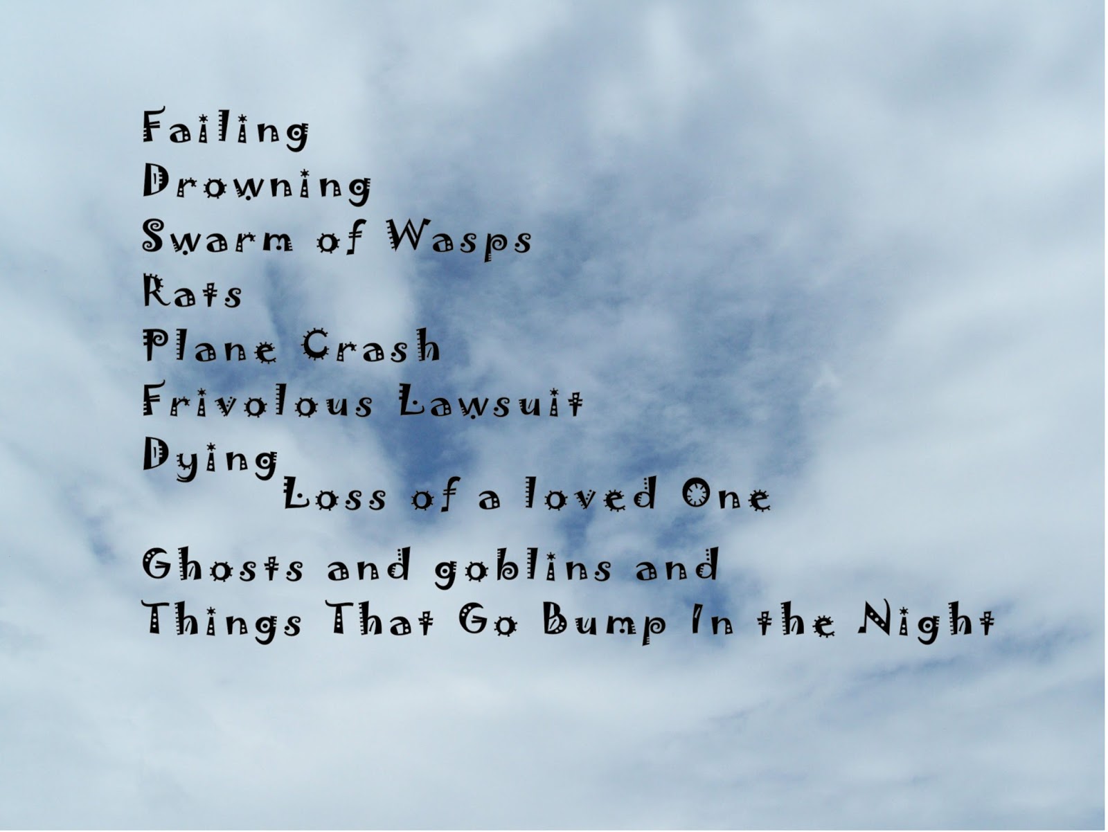 Whether they're rational or not, here's a few things that have crossed my mind as things to be afraid of.