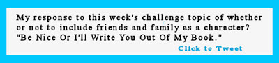 My first thought when I saw the topic for week 16 of the challenge was a t-shirt I saw in a writer's forum. Be Nice Or I'll Write You Out Of My Book. Well, to be written out, you have to be written in. The shirt was especially appropriate for those who write in the mystery genre.