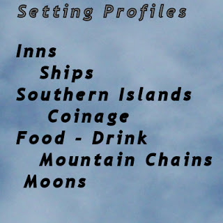 As the book (or books) progresses, I jot down specific items. Curses, measurements of time, local legends and traditions all get jotted down. But the main use of a setting profile is keeping names straight. The names of towns and regions, mountains and lakes are tracked as are items in their area. Ships and inns are tracked in the world profile.