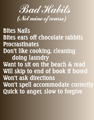 Bad Habit #1 - too focused. I've always been detail-oriented and able to focus on the small aspects of a project. It makes for a good researcher or computer programmer. However, due to the miles covered, now I can only focus on one thing at a time. It's not a field of depth has lessened as much as quantity. I'm not as good as I once was, but I'm as good once as ever was.