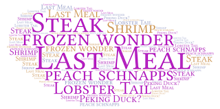 Besides lots of time for a meal to be prepared--and later, and even greater amount to eat it, here's a few items for a last meal.