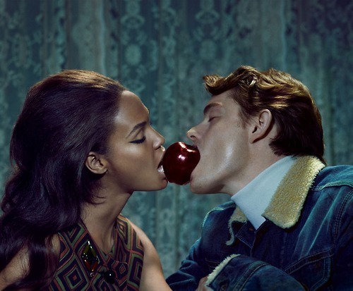 Joan Smalls and Sam Riley via “Dazed and Confused” magazine photoshoot.