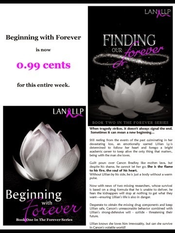 Finding our Forever will be released September 2014. You can take advantage of getting the first book, Beginning with Forever for .99 cents this week.
