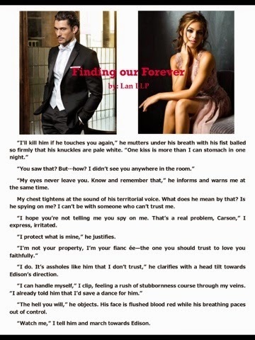 I just want to thank all my fans who've been patiently waiting for Finding our Forever. This teaser is for you:) Enjoy! It's coming next month.