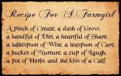 As you can see, someone came up with this fun recipe. Note: non of which includes sugar and spice and everything nice. While every girl has a bit of that in the mix, I’m sure, farm girls are so much more.