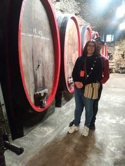 We went down in the castle’s dungeon where they keep the barrels of wine. These barrels are over 6 feet tall.