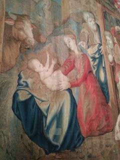 Tapestry of biblical scenes line another wall