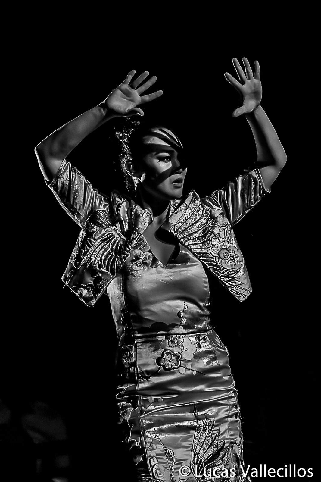 For example, in the song that opens the show I dance dressed in a “kimono” (traditional and formal Japanese garment) and I use hand movements from the ancient “Nihon buyo” dance from my region.