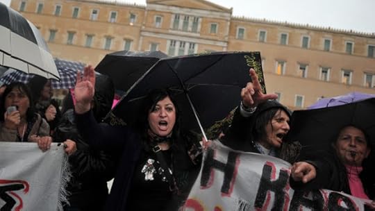 [Suspended Finance Ministry janitors protest outside the Greek Parliament in 2013.LOUISA GOULIAMAKI / AFP / GETTY IMAGES[The cynicism and brutality of what happened there is for the whole world to see...2010 to 2018 will go down in Greek history as an epic period of colonization; of asset stripping and privatization; of unfunded health and education; of bankruptcies, foreclosures, homelessness, and impoverishment; of unemployment, emigration, and suicide. These were the years of the three memoranda, or “financial-assistance programs” accompanied by “structural reforms,” enacted supposedly to promote Greek “recovery” from the slump and credit crunch of 2010. They were, in fact, a fraud perpetrated on Greece and Europe, a jumble of bad policies based on crude morality tales that catered to right-wing politics to cover up unpayable debts.This was a bailout? The word reeks of indulgence and implied disapproval. As it was often said, “The Greeks had their party and now they must pay.” Yes, there was a party—for oligarchs with ships and London homes and Swiss bank accounts, for the military, for engineering and construction and armaments companies from Germany and France and the United States. And yes, there was a bailout. It came from Europe’s taxpayers, and went to the troubled banks of France and Germany. Greece was merely the pass-through, and the Greeks who paid dearly with their livelihoods were just the patsies in the deal.The third “memorandum of understanding” expires today. With Greece’s completion of a three-year, 61.9-billion-euro eurozone emergency-loan package, it can once again borrow at market rates. The expiration of the memorandum also ends, for now, the direct control by Europe’s “troika”—the International Monetary Fund, the European Commission, and the European Central Bank—over the Greek government. But its conditions, constraints, and consequences will endure.